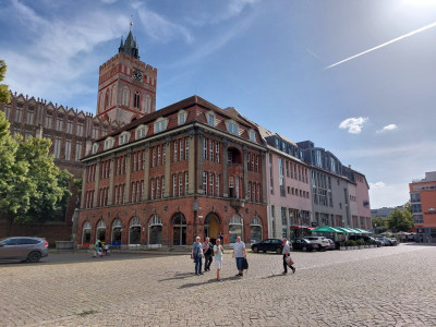 Danach aber wieder: Schnellstens zu Fuß Richtung Bahnhof, als ob es den letzten RE zu erreichen gab. Wie auch schon auf der Brücke habe ich mich immer wieder umgedreht, geschaut und fotografiert. Man wartete nicht auf mich. Schade. Auch das ist nicht meins: Denn wenn man sich schon mal in einer anderen Stadt befindet, KÖNNTE man ja auch mal innehalten und sich dies und das anschauen.